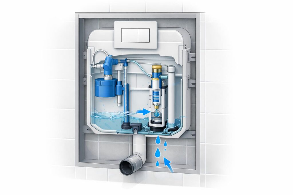 Sert su olan bölgelerde kireç ve tortu birikimi; düğmenin geri dönüşünü yavaşlatabilir, valfin kapanmasını geciktirebilir ve conta yüzeyini bozabilir. Sonuç: sistem bazen düzgün çalışır gibi olur, bazen tekrar akıtır.